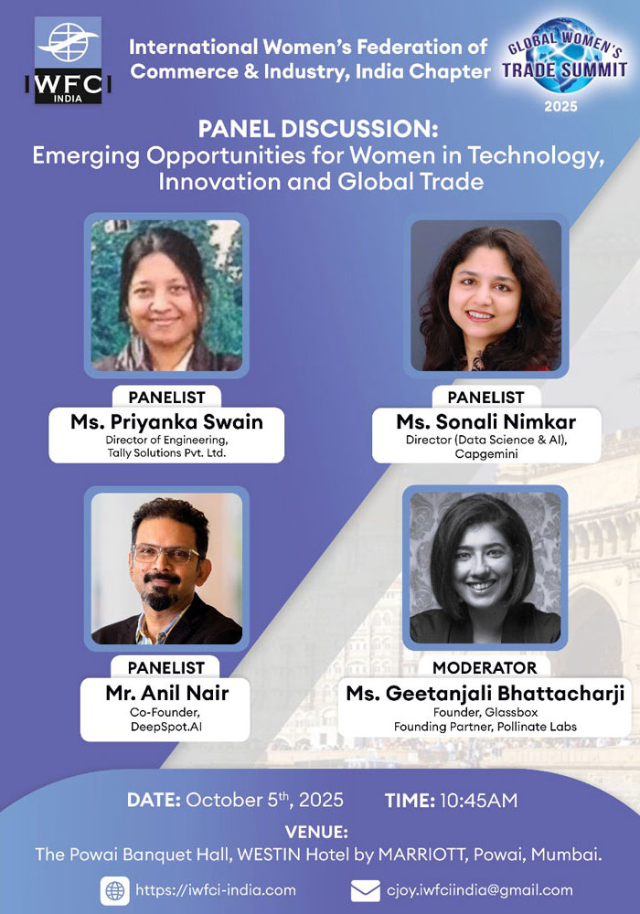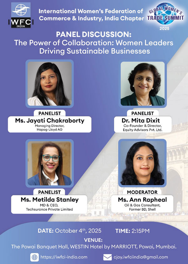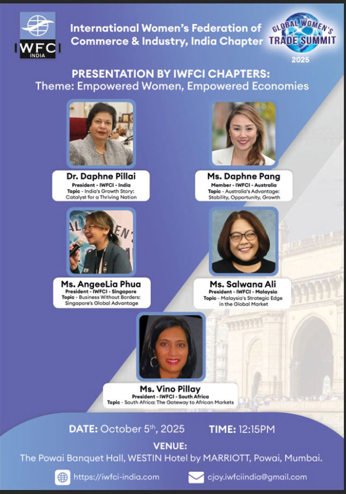The International Women’s Federation of Commerce and Industry (IWFCI) – India National Chapter is proud to host the Global Women’s Trade Summit 2025 (GWTS 2025) on 4th and 5th October, 2025, in Mumbai, India.
